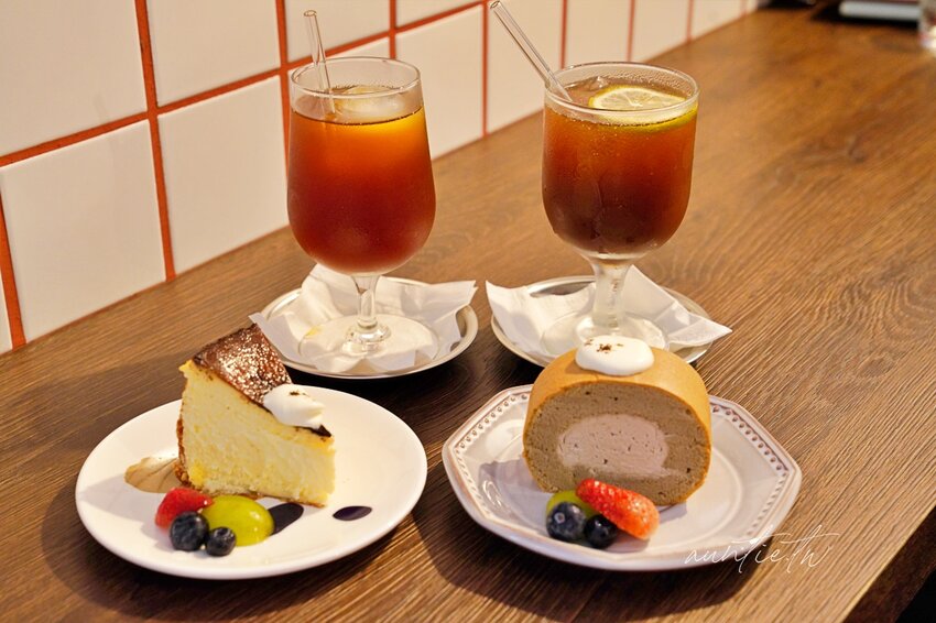 淡淡的焙茶香氣,奶油與蛋糕體部分口感真的很棒,不甜不膩,甜點都挺有水準的。