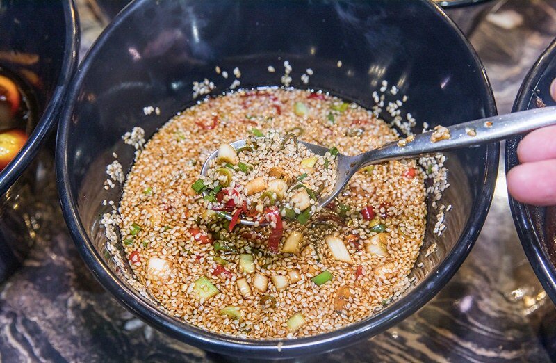 調味料架上有幾樣和一般的火鍋店不太一樣,比方加了檸檬的醬油、特調的芝麻辣椒醬油,還有自家特制的沙茶醬都蠻有特色的。