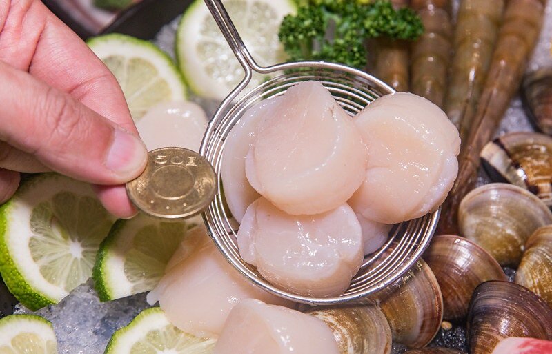 這八個北海道生食等級的大干貝真的厚到很誇張,如果去日本料理店,吃一貫少說也得150起跳,厚實之餘還軟嫩到不行,建議千萬別涮太久,最後中心仍何留3到5分的生熟,那干貝的甜度最為鮮美。