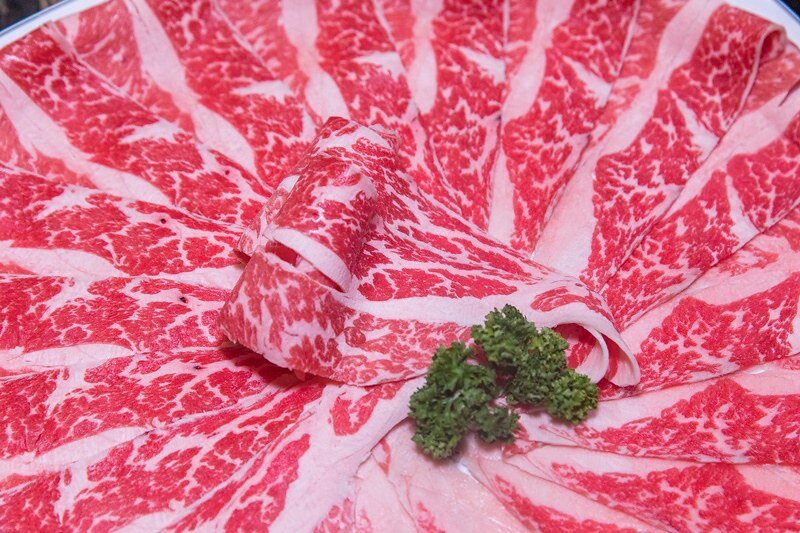比一般和牛火鍋片略厚且很大片的雪花和牛,內層的油花很細很勻稱,外層的油花更為豐富,入口飽嘴之餘,滑嫩油甜破錶,這樣的價位和份量真的cp值不低。