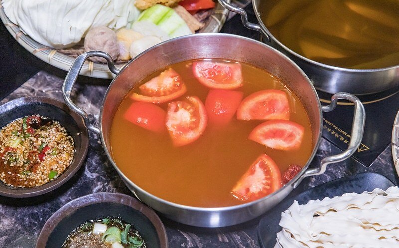 另一鍋是健康蕃茄超好喝,除了新鮮的蕃茄外,感覺還加了一點點紅棗等中藥,都還沒開始刷我就喝了一兩碗湯....難得的是涮了海鮮和肉類後還能保持相對清楚的湯頭鮮美。