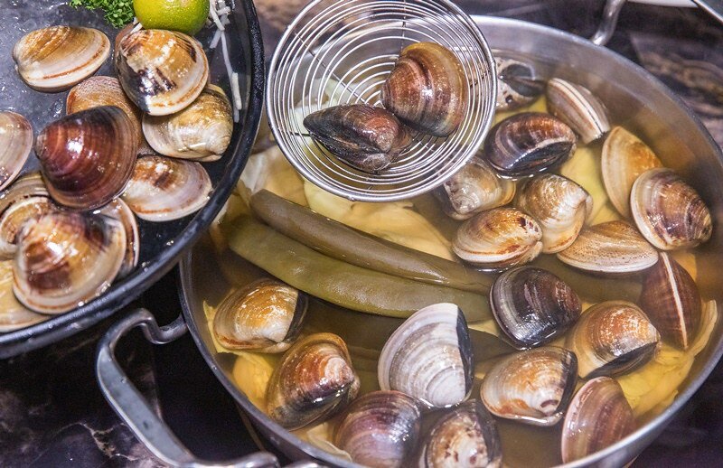 四隻南美白蝦新鮮爽脆也蠻有甜度,至於十幾粒個頭不小的蛤蜊,等下連同極鮮蛤蠣爆爆鍋再一起聊。