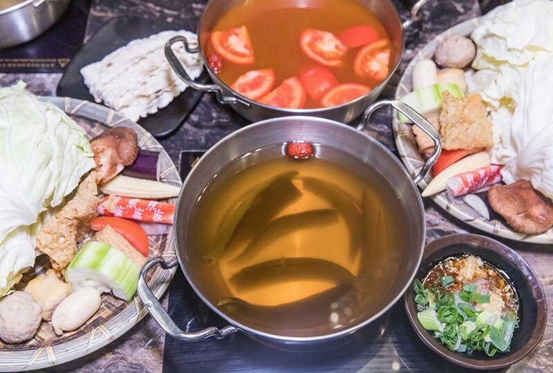 菜盤方面有多達十來種各式火鍋料,香菇、茄子、絲瓜、豆皮、玉米筍、蟹肉棒、三種丸子等,肉肉控也可以換成培根牛或快樂豬正常盤。