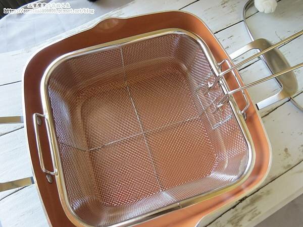 附上了油炸籃、蒸盤,多用途的方型不沾鍋,一鍋可抵好幾鍋呢!