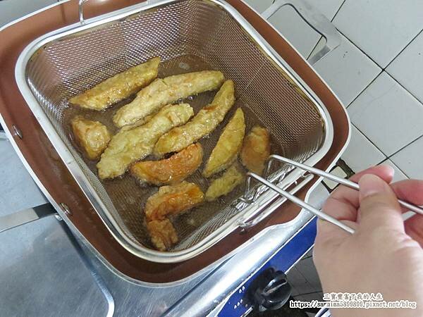 但多了這油炸籃之後,只要把炸物放入籃中,炸好整個取出來就直接瀝乾油脂,