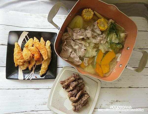 方型不沾鍋煮火鍋更是合適,放入所有的食材,加入自來高湯,