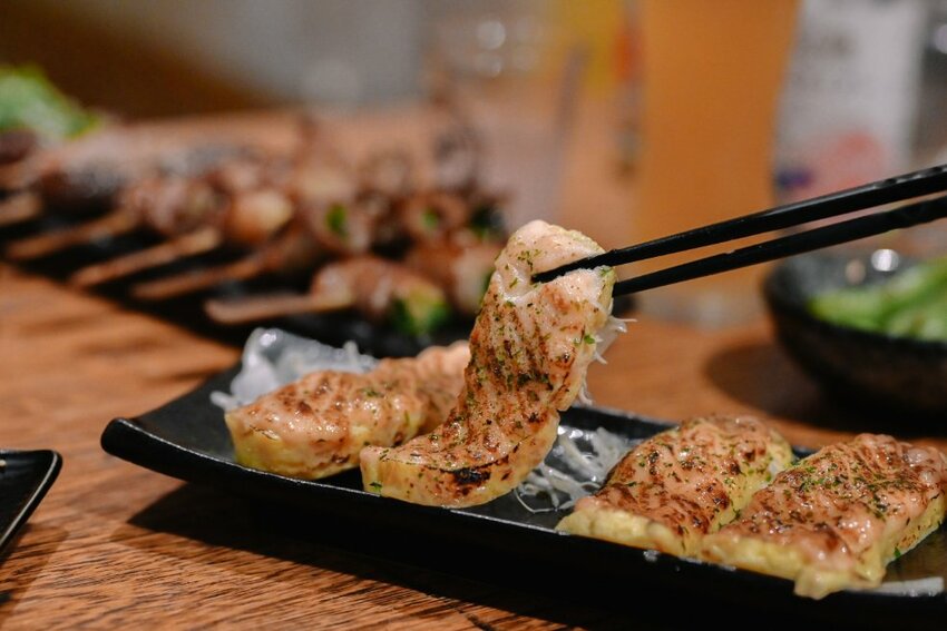 這款我們三人都激推,不管吃幾次都不會膩耶,誇張的好吃!雞肉很肥美,明太子鋪的厚厚的在雞肉串上炙燒入口鹹香超級絕配,喜歡吃明太子別錯過這道。