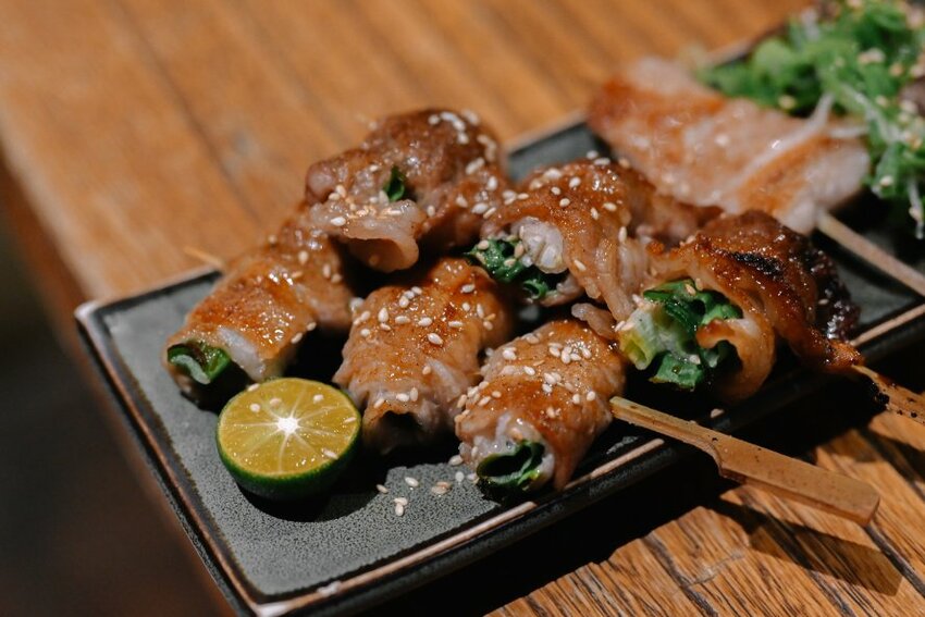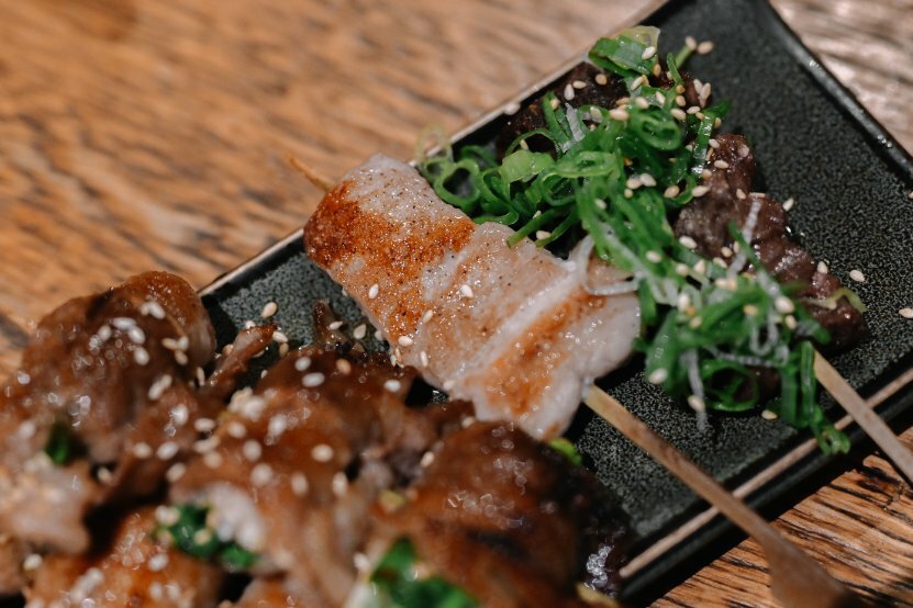 香蔥牛肉串使用是牛小排口感很嫩口配上蔥一起入口,肉質厚實很有咬勁又是不一樣的口感。