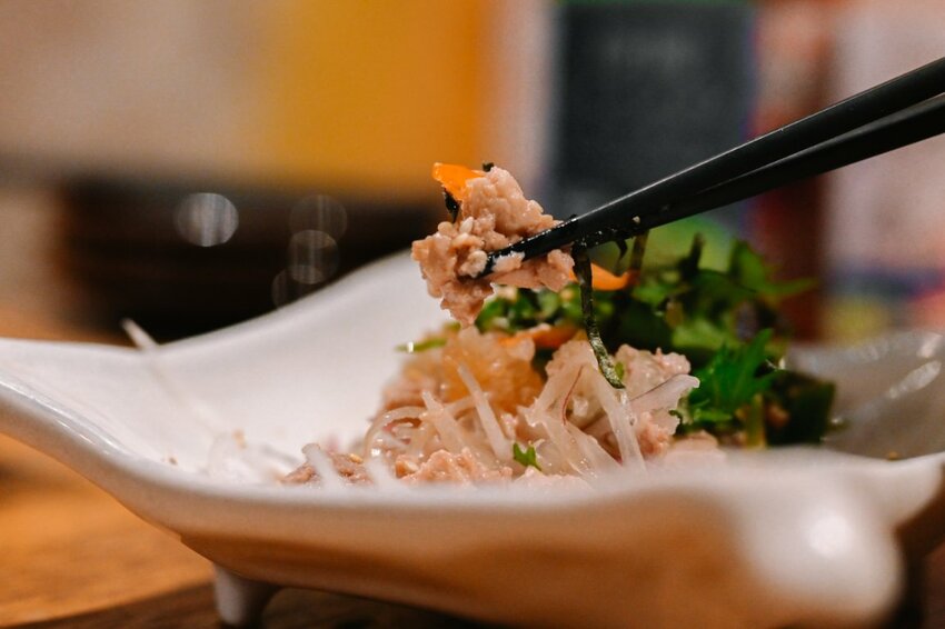 酸甜洋蔥絲配上鱈魚肝,口味略重很下酒菜。
