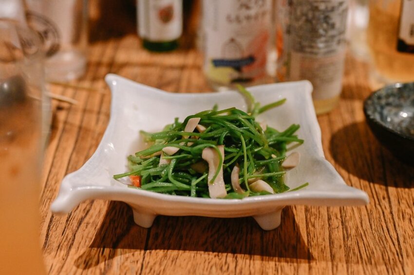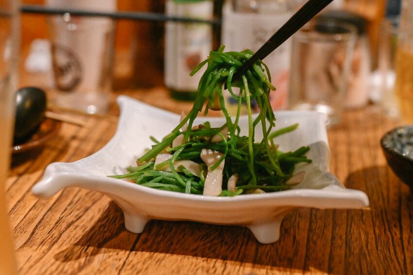 吃了重鹹外來點青菜均衡一下,這邊炒水蓮是與香菇拌炒可以加辣度,非常爽脆,推。