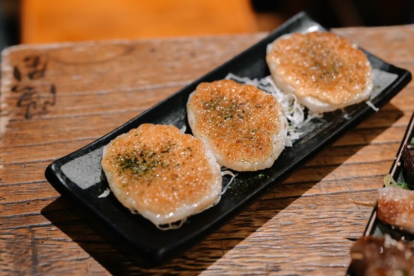 每次來我一定必點這道!山藥上抹了滿滿厚厚的明太子醬炙燒過更有香氣,滋味鮮鹹甜,超讚的。