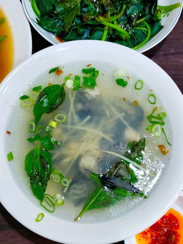 他們的湯頭裡面有加九層塔跟薑絲,我覺得算是好喝啦