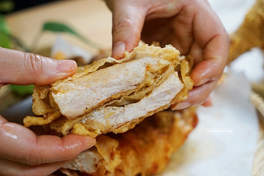 雞肉醃漬後再裹上獨家脆皮粉油炸,粉裹得不會很厚重,加上雞排相當厚實,一入嘴就能感受外酥肉嫩且帶肉汁的美妙滋味,甘梅粉香氣足,咀嚼間辣粉的辛味很涮嘴,每一口都很有滿足感,對於肉控來說雞排真的不要切,不要切直接啃最好吃!!