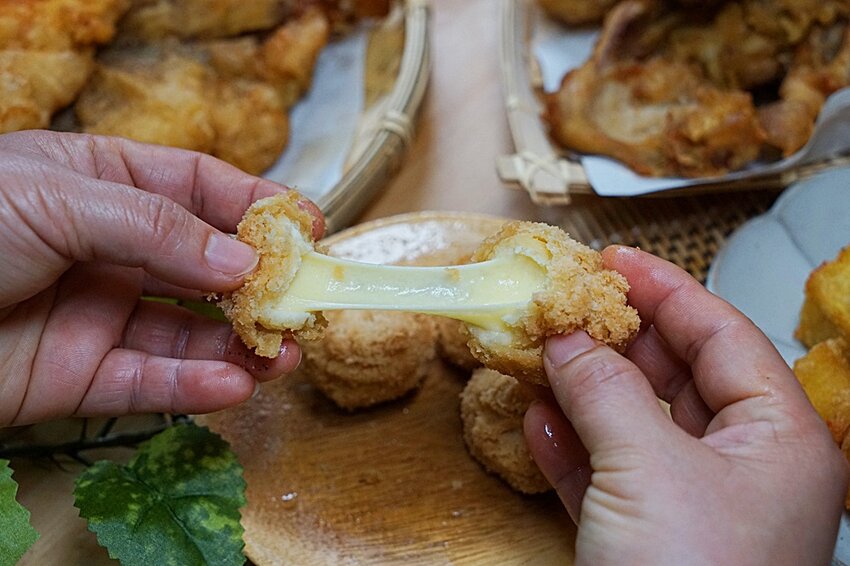 這起司球在吃時一定要小心燙口,外層香酥口感如酥皮般的酥香,裏頭起司濃郁又柔軟,而且起司的量不少又有點像再吃起司口味的麻糬,超好吃的啦! 讓人吃過一次就上癮的炸物~