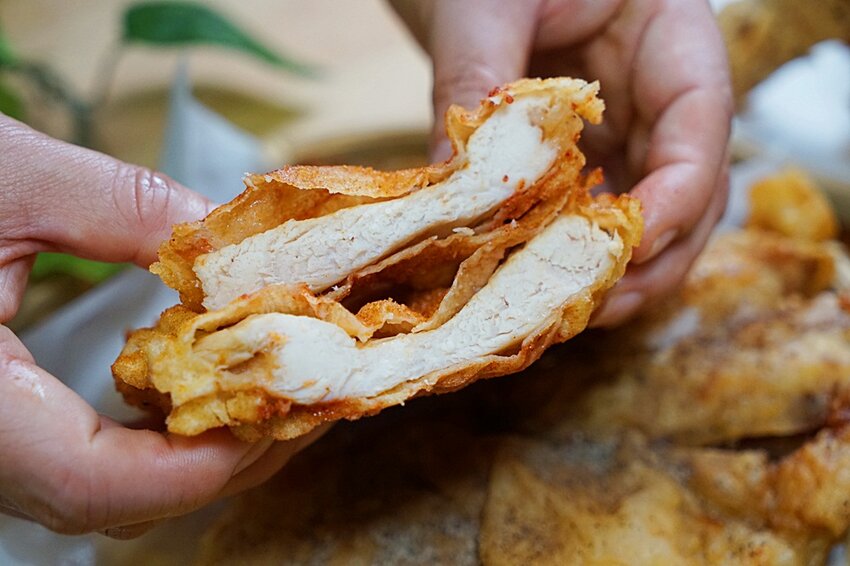 脆皮雞排(胡椒)的厚實度不低,採獨家配方醃製,再撒上特製胡椒提味,香氣逼人又不死鹹!!