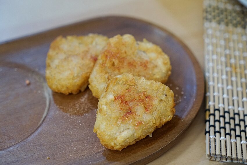 三角薯餅加上甘梅粉真的很好吃,外酥內軟Q,加上撒上些許甘梅粉讓炸物吃起來更清爽