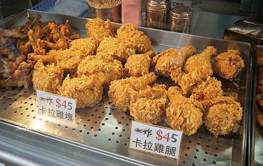 各式各樣的炸物都會擺放在櫥窗內,這卡拉雞腿、卡拉雞塊的大小以及誘人的香酥樣兒,絕對不輸給連鎖美式炸雞店
