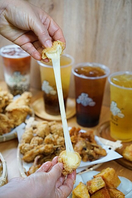 小凉不免得又和朋友邊吃邊玩牽絲比賽,看看誰拉的起司球牽絲最長不斷,吃炸物也可以很有樂趣呢