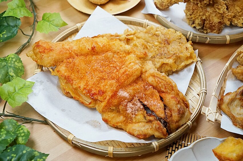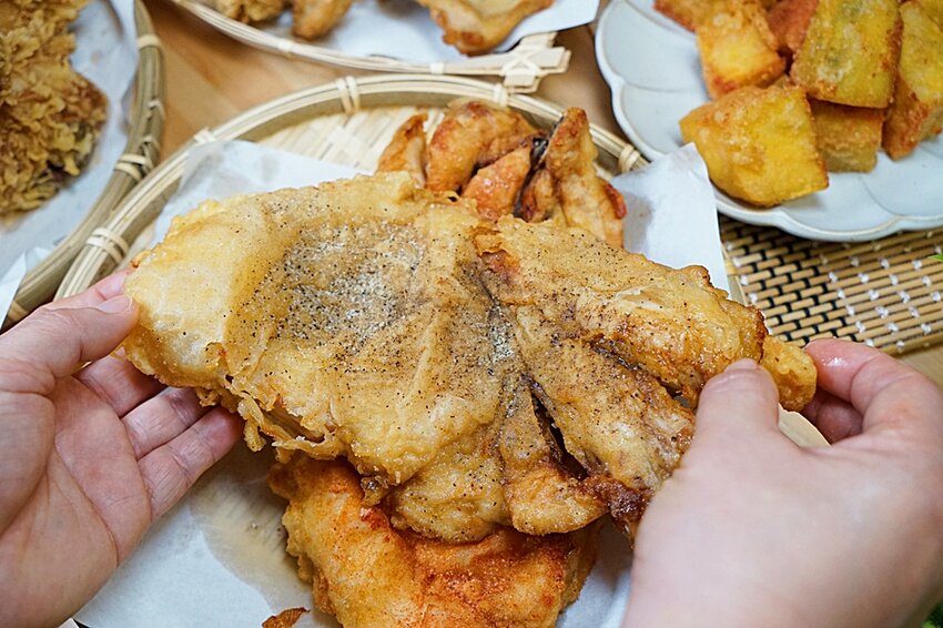 啾ㄠˊ炸雞家的地瓜切法也跟一般炸物店不一樣,採用霸氣大塊呈現,大口吃入嘴更是爽勁滿分…
