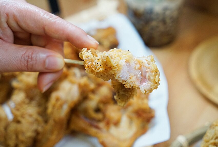 你看看這雞米花有多麼犯規,不只是外皮酥香涮嘴,裡面的雞肉還保有肉汁呢