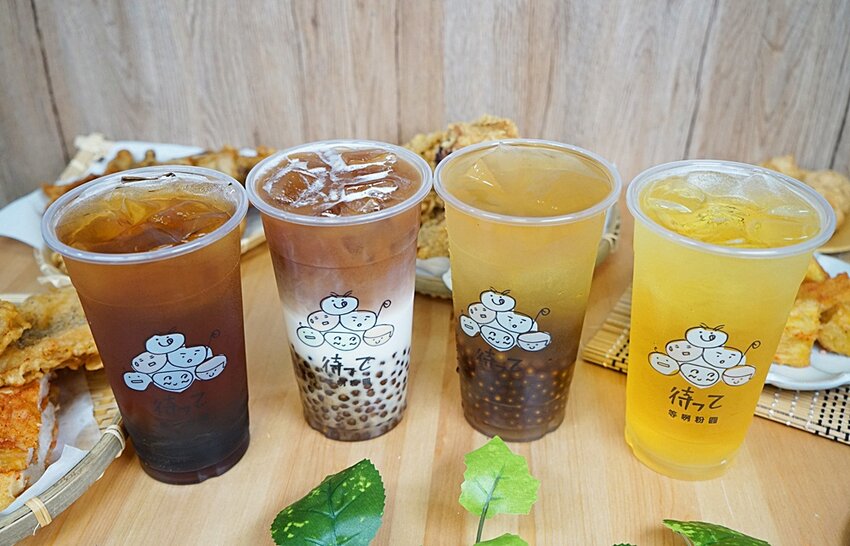 吃炸物當然不能少了飲料,依照人數點了四杯依序是仙楂鐵觀音→回憶奶茶(加粉圓)→粉愛荔香青→台灣高山青