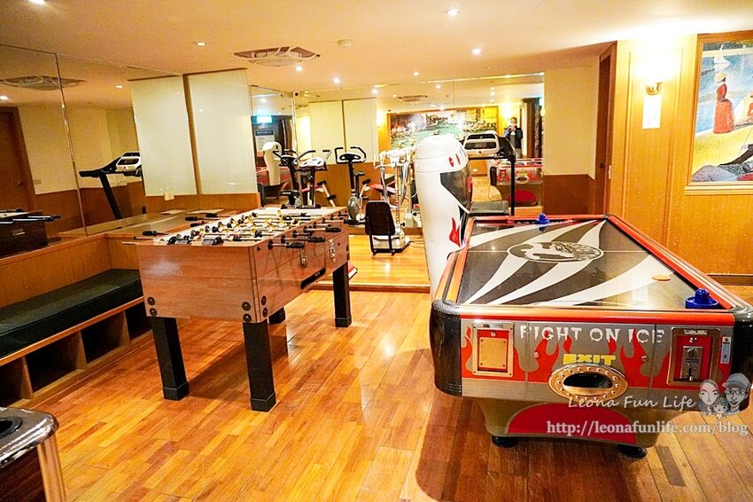裏頭有健身房、遊戲機、撞球等設施可以讓房客免費使用,