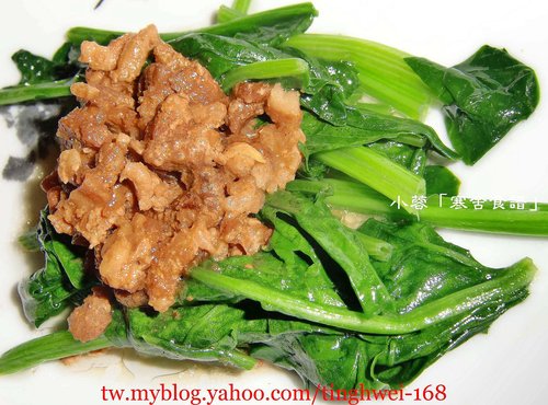 菠菜配滷肉乍看之下很像麵店攤的「燙青菜」哩....