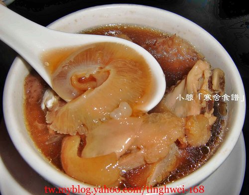 有一小片魚翅、雞肉、豬腳、芋頭....等