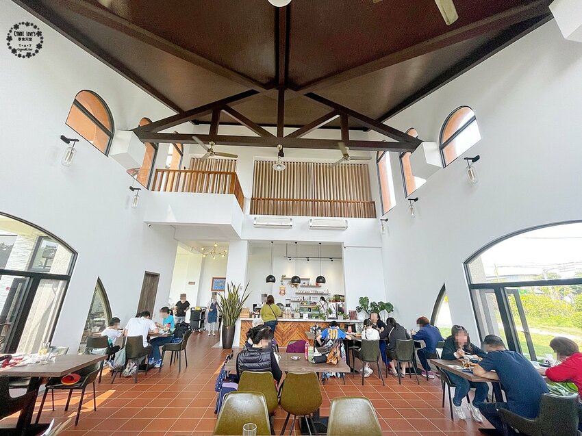 山水啡 Cafe&Meal外觀橘白色風格壯觀外,店內高挑的環境設計不壓迫感,旁邊的窗戶設計還可以看到外面的風景,可惜當天店內位置都滿了,不然在裡面好像也是不一樣的用餐感受。●原文出處,詳細圖文可至:https://cyndi.tw/cafemeal/