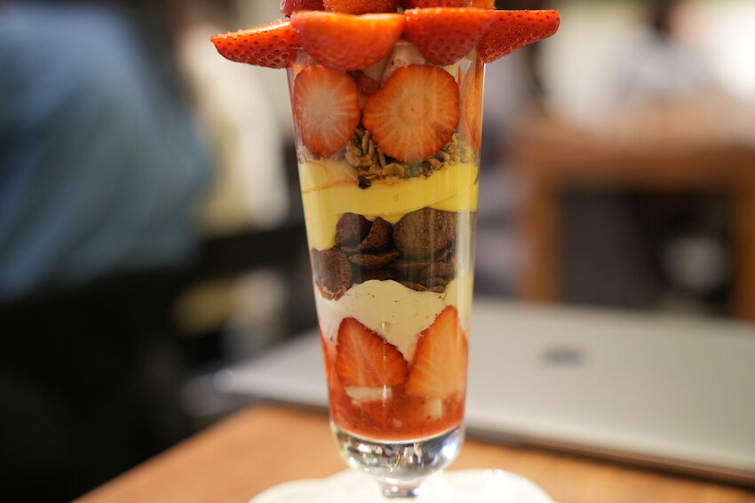「木易子食所」這次最浮誇的就是草莓杯杯,由超豐富的配料像是草莓果醬、奶酪、自製脆脆、卡士達、馬林糖、草莓乾、巧克力脆片和草莓巴巴露亞堆疊而成,是不是超級澎湃啊!!
