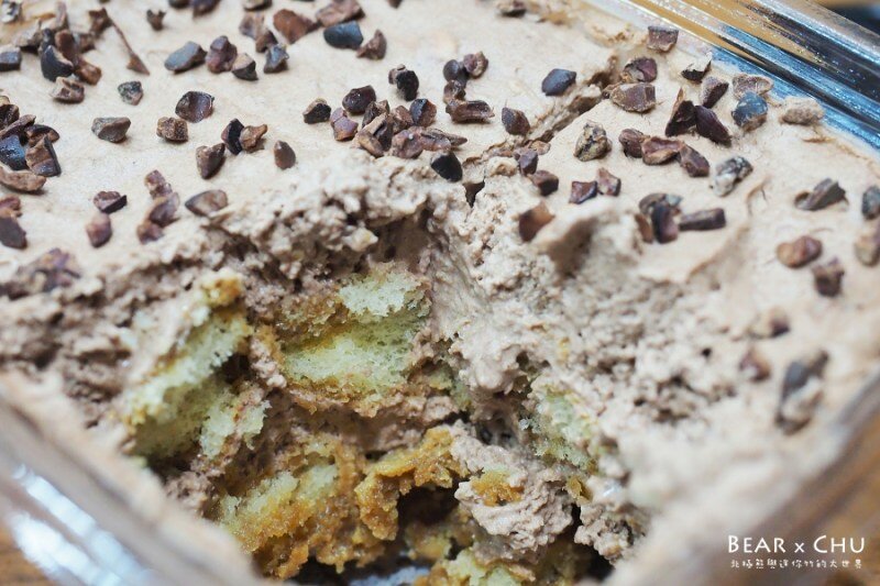 柏尼西蒙的濃情巧克力提拉米蘇,除了在表面撒上苦甜巧克力之外,馬斯卡邦乳酪也融入巧克力,吃起來多了巧克力的香氣,吃起來有點像是巧克力慕斯的感覺,喜愛巧克力又沒特別愛濃厚咖啡的話,可以挑款來吃。