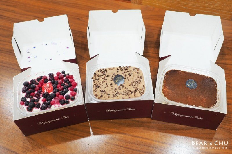 既然要吃看看當然是三種口味一次滿足,吃個過癮!從左到右分別是柏尼西蒙的森林派對提拉米蘇(就是莓果口味)、濃情巧克力提拉米蘇和經典原味提拉米蘇。