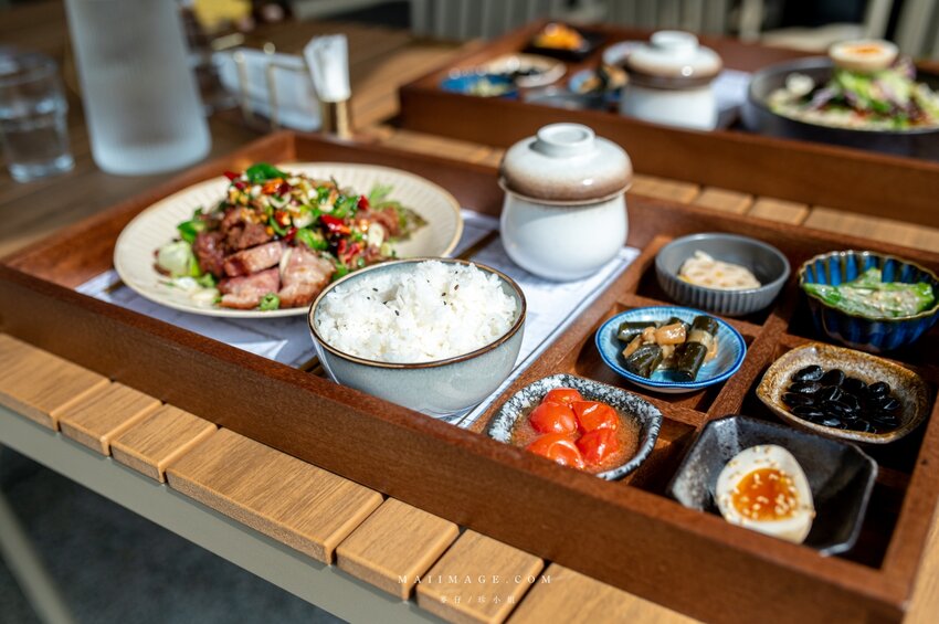 ▲『時光樹影』的鹹食都會是主菜搭配6樣養生小菜跟一個湯品做組合。木製托盤跟餐具都很有質感,光是在這餐具上面就可以看出『時光樹影』的用心。