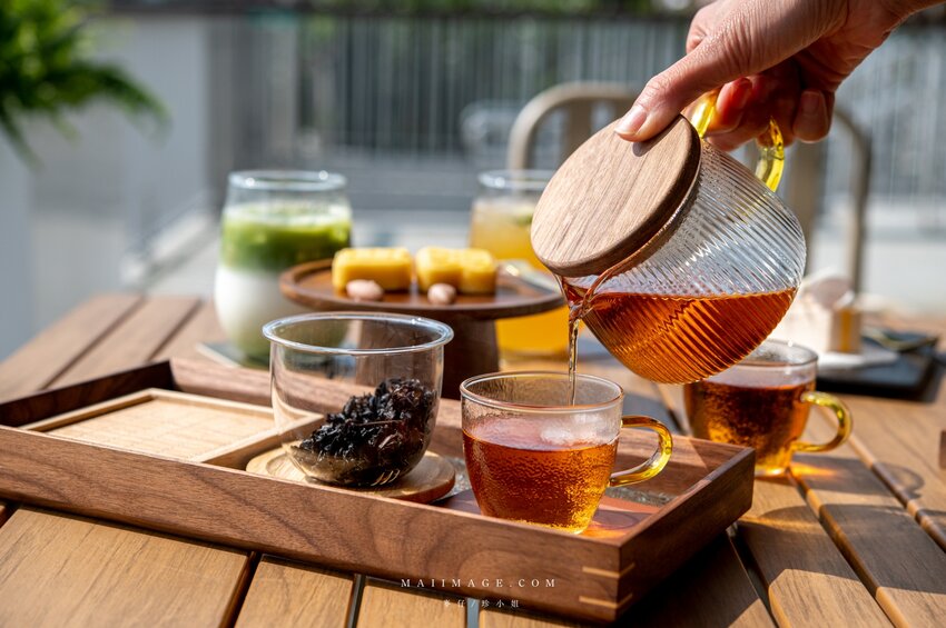 ▲『時光樹影』的茶葉都是選擇來自石門在地小農的茶葉,這款茶屬於重焙茶葉,帶著中發酵。如果喜歡喝濃茶那這款絕對合適。茶色屬於顏色較深的琥珀色同樣在陽光下特別亮眼。