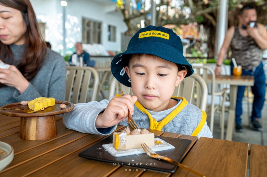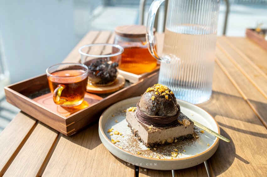 ▲這天的氣氛跟天氣太棒實在捨不得離開,中餐吃完緊接著就是甜點時間,如果想要單純吃下午茶這裡也有雙人午茶方案,天氣好來這品個甜點也是挺不錯的。我們這天一人點一份甜點跟飲料,甜點部分點了店員推薦的時光的沙、層層的你、還有烏瓦房三種。