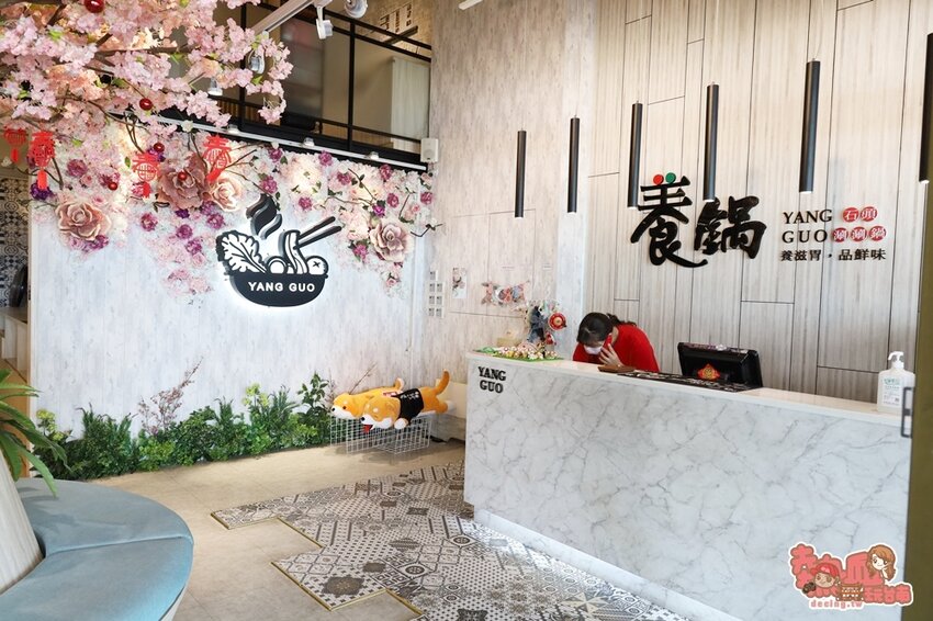 「養鍋 Yang Guo 石頭涮涮鍋」店內會發現超萌的柴犬就藏匿在火鍋店許多角落及空間裡,唯美的店面裝潢、可愛的柴犬裝飾,還是一間動物友善餐廳,寵物只要繫繩,店內還有寵物專屬座位及餐具。