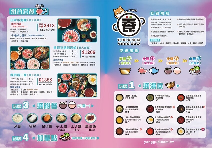 台南「養鍋 Yang Guo 石頭涮涮鍋」菜單MENU
