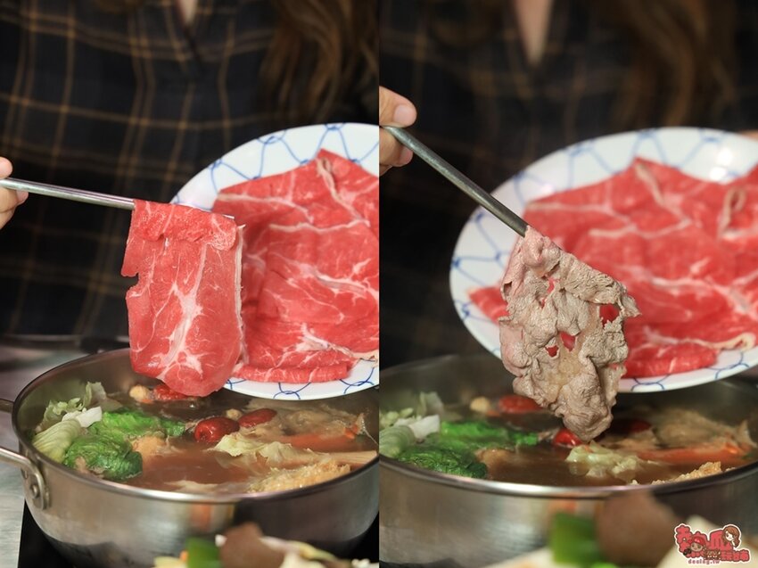 搭配的兩種湯底分別挑選了蒙古天香湯底及啵記壽桔燒,蒙古天香湯以中藥為基底,加入胡椒豆蔻、孜然調味熬煮,湯底煮沸時光是散發出來的香氣,就讓人忍不住吞口水。