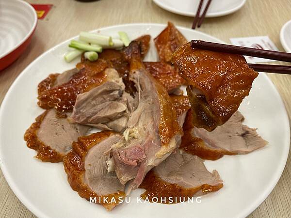 我們當天是點了半鴨,這是半隻的份量,鴨肉還算多汁、很Q,調味偏重一點,肉也片的比較厚,我覺得是單吃比較OK;皮的部分單吃會比較脆一點,如果沾了醬汁就稍微會比較不脆,但也不到飯店那種烤鴨的脆度啦!跟大飯店一隻兩三千當然還是不能比,但是比一般市售我覺得是非常好吃的了!