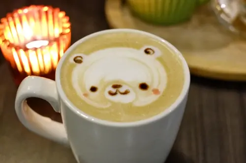 熱咖啡拿鐵:可愛的小熊拉花,讓人光看就覺得可愛度破表,小嚐一口後,綿密的奶泡帶著迷人奶香在口中緩慢四溢,咖啡喝起來香氣十足,在奶香的襯托下更顯得咖啡芳香醇厚。