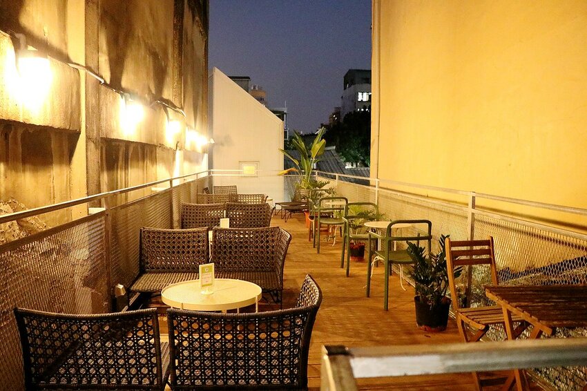 順著小斜坡往上走驚喜的發現居然還有很像國外的頂樓露天座位