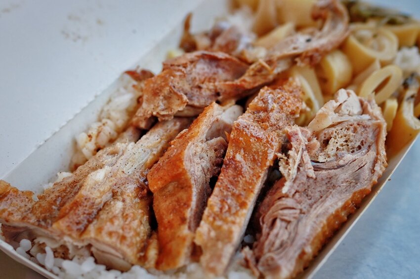 這天我們點了外帶的煙燻鵝肉飯(80元)、煙燻鵝翅(6支200)、煙燻鴨翅(1支25元)、鴨胗(看大小估價),我們準備帶回家的煙燻涼拌品項才花350元,且他們半支鵝也才350元,價位真的好親民,重點真的好吃。煙燻鵝肉飯也是我們很推薦,飯粒粒分明又很Q很香,鵝肉的煙燻味再配上比例剛剛的醬汁,冷了吃也是好吃,來到西螺遊玩的朋友真的不要錯過附記碳烤鵝肉喔!