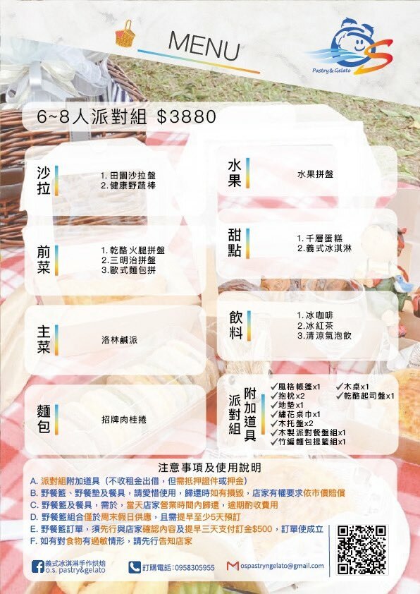 | OS義式冰淇淋手作烘焙 野餐組合價格/注意事項 |