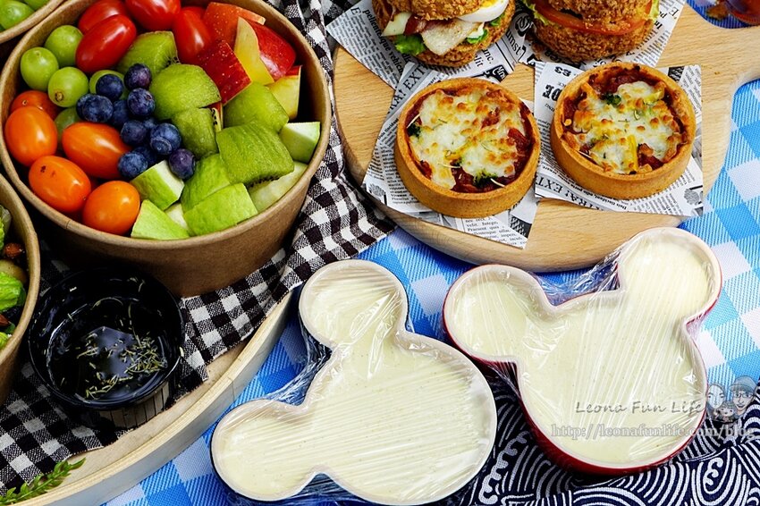 內含餐點田園沙拉盤、健康野蔬棒、乾酪火腿拼盤、三明治拼盤、歐式麵包拼盤、洛林鹹派、招牌肉桂捲、水果拼盤、千層蛋糕、冰淇淋、冰咖啡、冰紅茶、清涼氣泡飲,