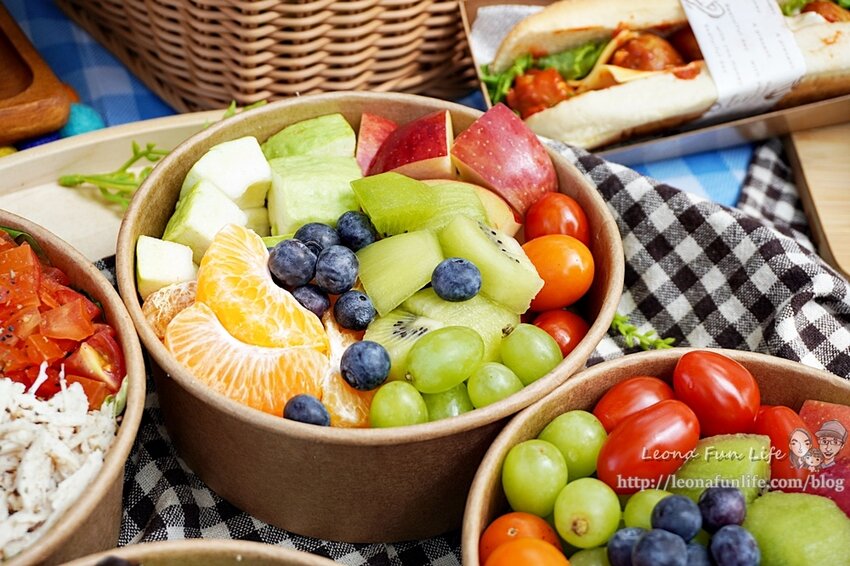 OS野餐4人份套餐裡會提供兩份水果跟兩份的沙拉,