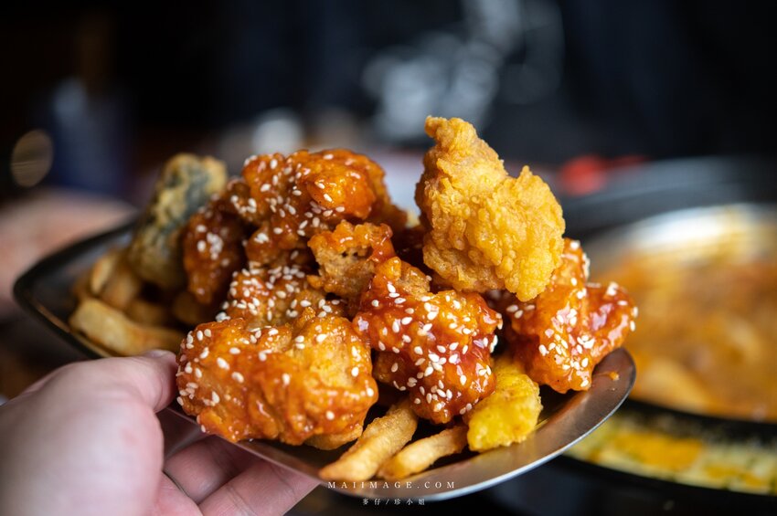 這裡面的炸物選擇性不算太多,但該有的韓式炸物像是韓式炸雞,薯條、地瓜等炸物這裡都有,不定時會熱騰騰一大盤上桌,食材給得相當大方。