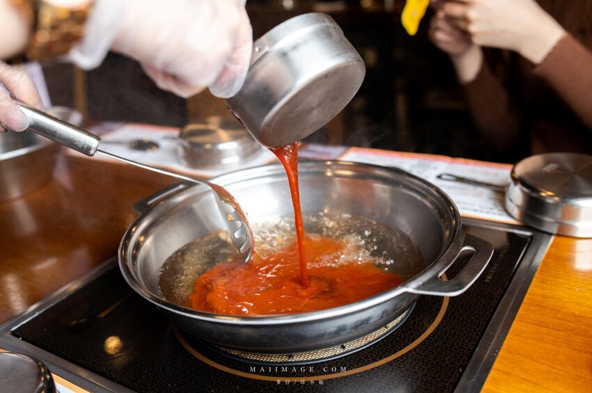 鍋物的湯頭除了基本高湯外,還可以依照嗜辣喜好來調整辣度,這個韓式辣醬帶點甜度濃濃的加入高湯裡很快就變成韓劇裡接面的辣炒年糕了。
