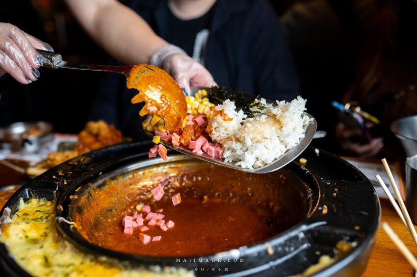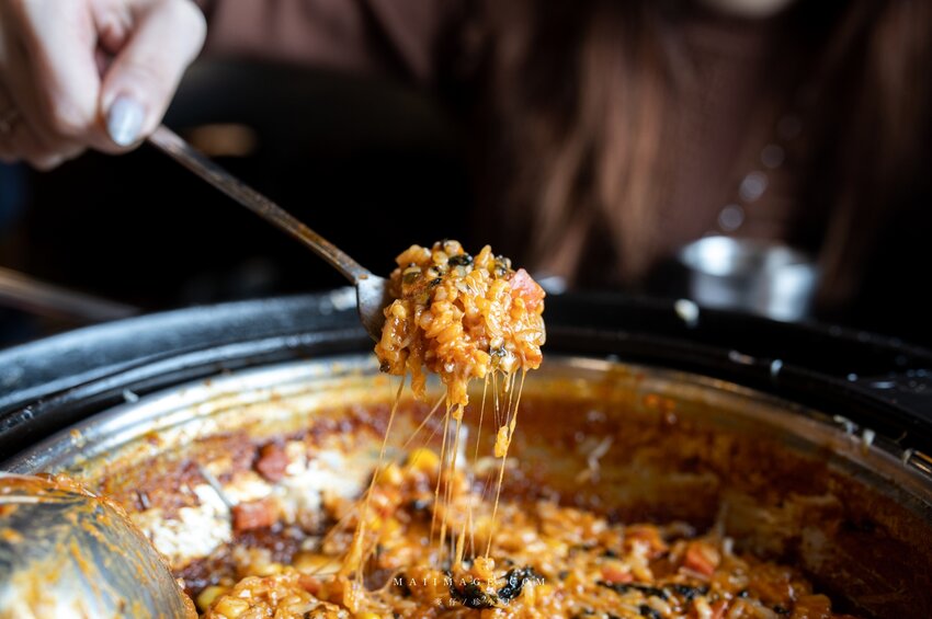 濃郁的炒飯吸收年糕火鍋裡面所有的精華後再加上大量的起司~牽絲的畫面就算前面吃得很飽還是想要再吃上幾口。