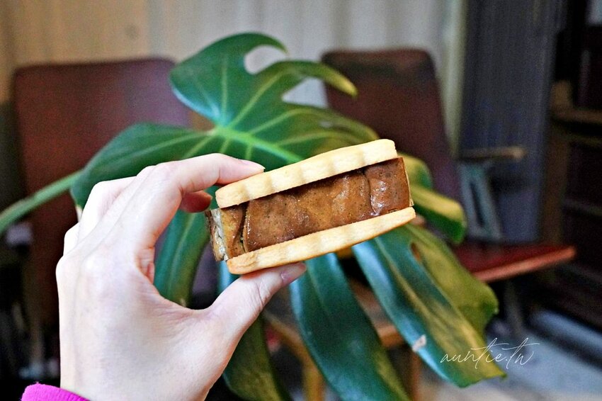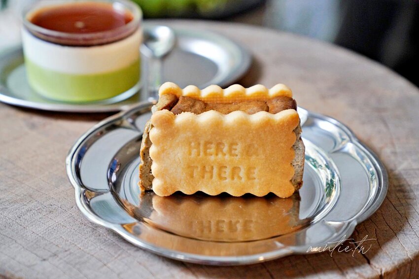 鹽麴餅乾必點!HERE & U 的鹽麴餅乾裡夾的是蛋糕,而且size很巨大,吃完一個根本飽到頭頂,而且裡頭夾的還是整塊巴斯克蛋糕,搭配起來沒有違和感,好吃但是太大塊啦!