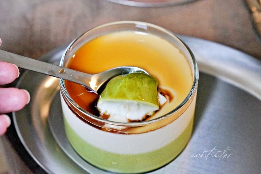 超愛這豆乳布丁的味道,吃起來的口感就像豆花一樣,上層是原味,下層是抹茶,有濃郁抹茶香氣,還吃得豆香,口感好滑嫩,厲害,太小杯了吃不滿足。